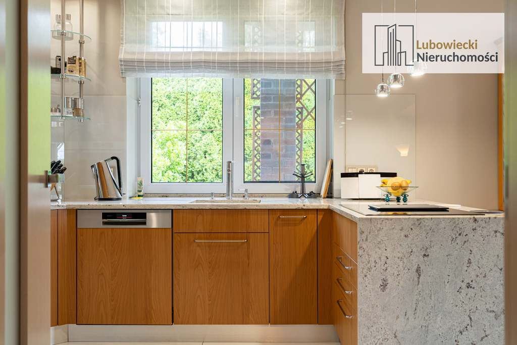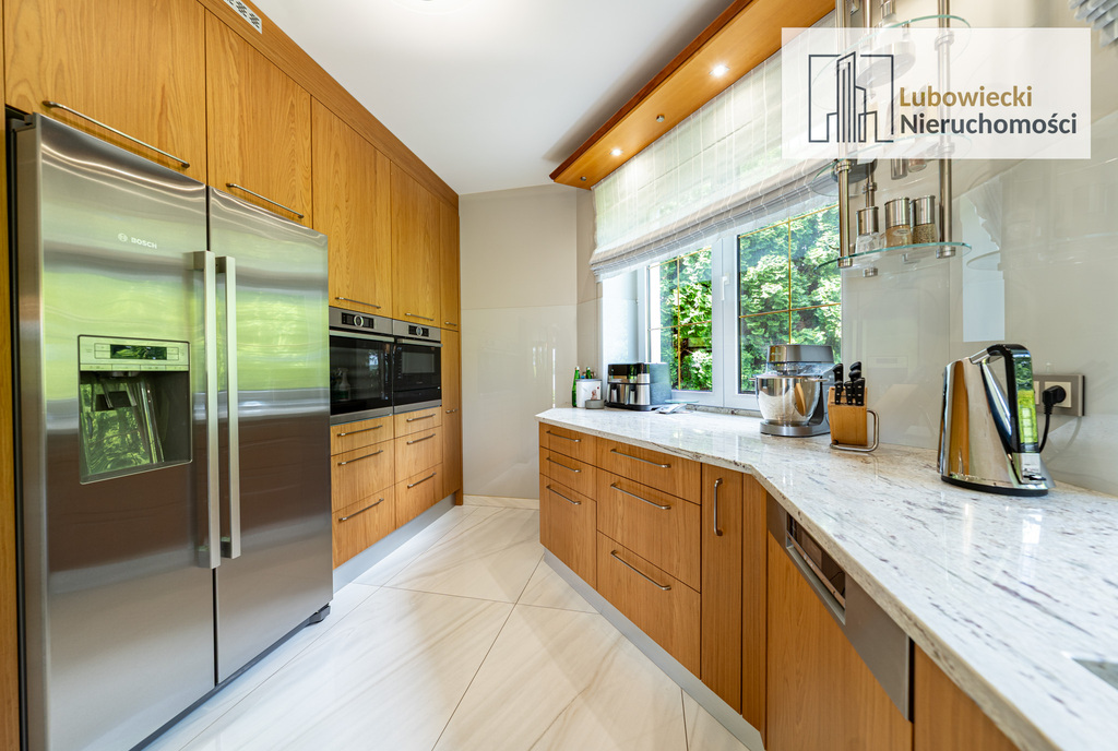 - całkowitą przebudowę kuchni obejmującą: wymianę zabudowy kuchennej (forniry w szafkach kuchennych wykonane zostały z czereśni amerykańskiej naturalnej, blaty kuchenne wykonane z polerowanego granitu) oraz wymianę wszystkich sprzętów kuchennych na nowe firmy BOSCH,