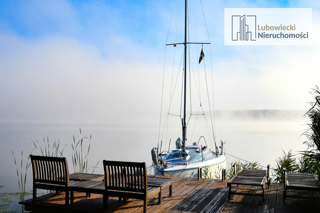 - zejście do prywatnego pomostu w kształcie litery L o długości 20 m, który został wykonany z drewna modrzewiowego, pomost jest przystosowany do cumowania jachtu żaglowego,